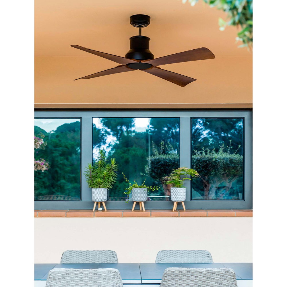 M 127cm Svart/trä IP44 Takfläkt med DC motor inkl. fjärrkontroll.