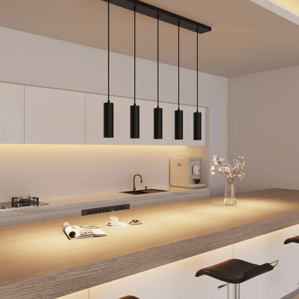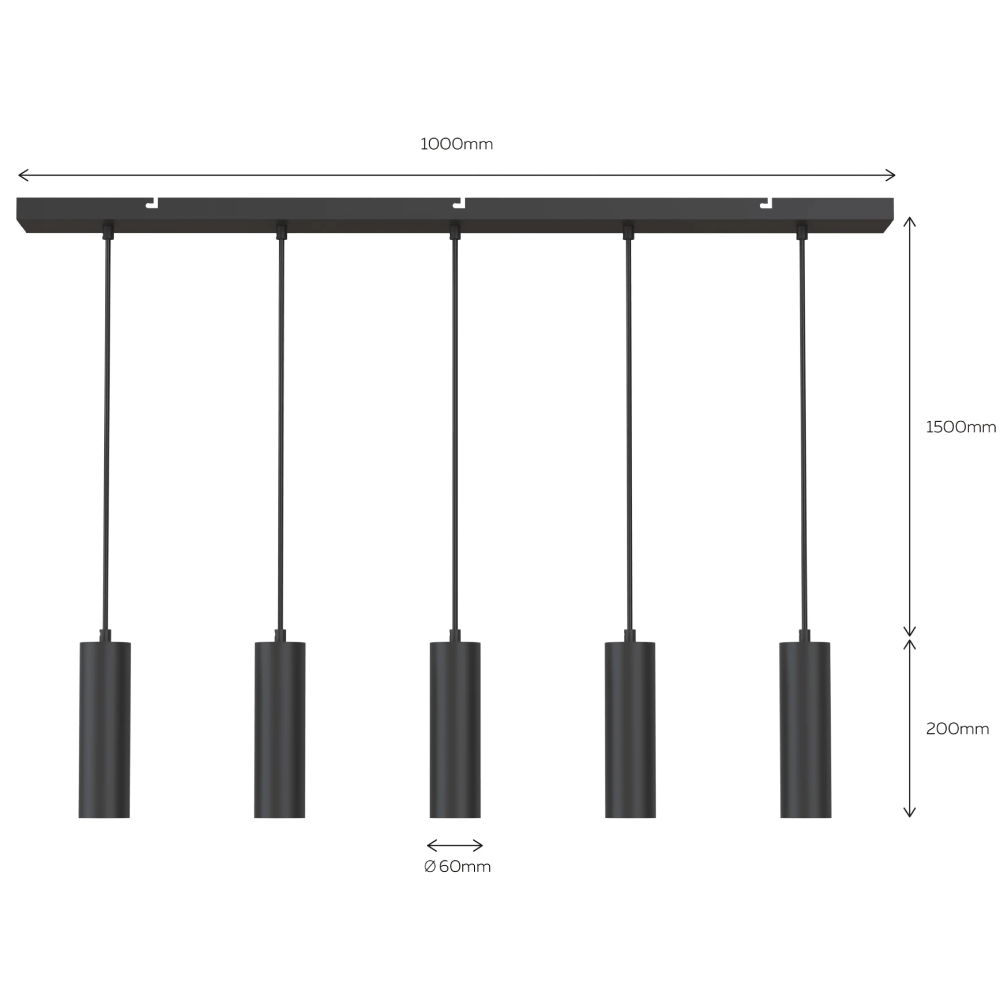 Takpendel 1-meter med 5st GU10 lampor Svart