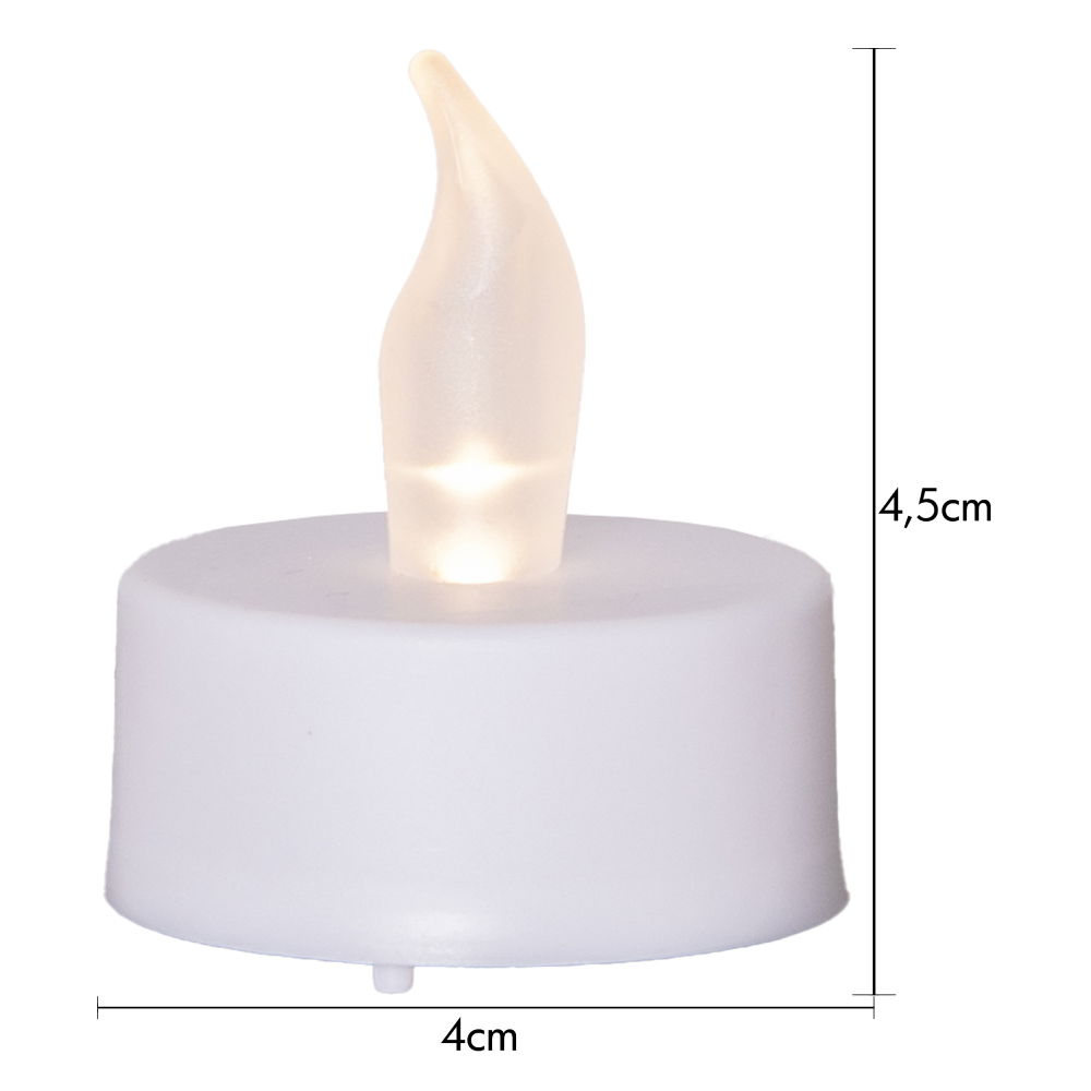 Set med 12st vita uppladdningsbara värmeljus med mycket naturtrogen låga som lyser med varmvitt sken.