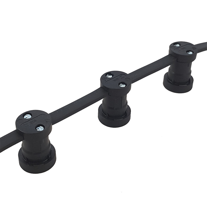 Ljusslinga Flatkabel med E27 sockel, från 5 meter med c/c 50, 75 eller 100 cm. Kedjebelysning för alla dina behov, exempelvis, festen, julgranen eller till ditt tält etc.
